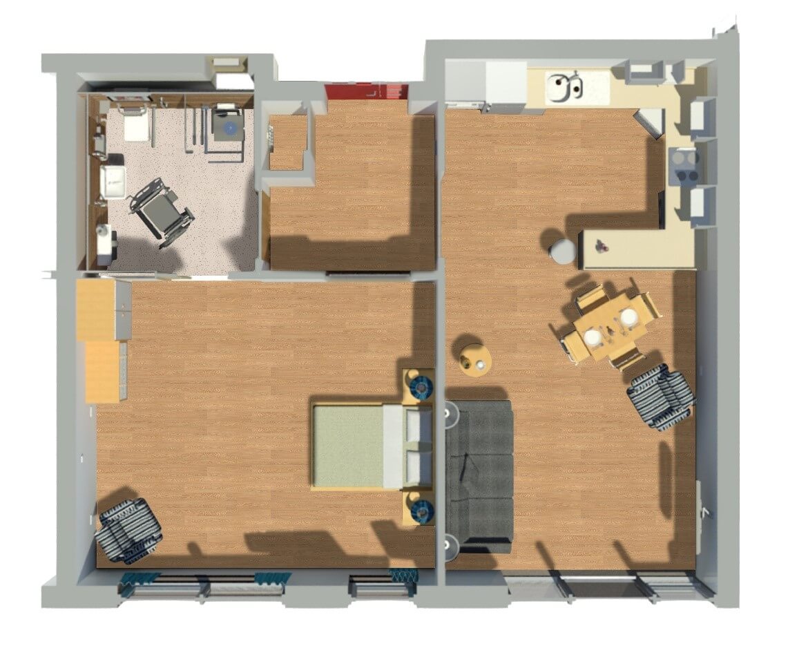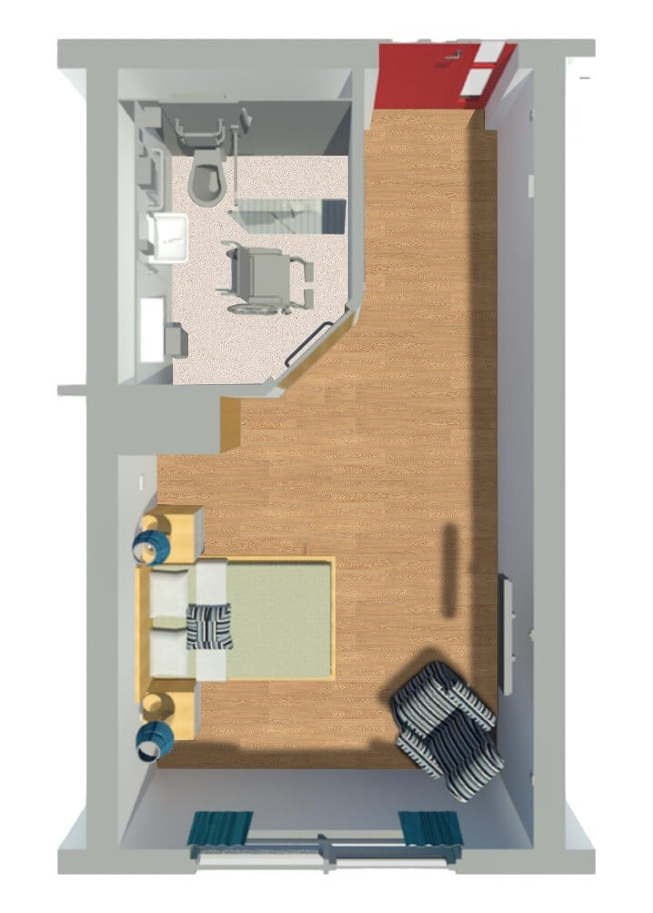 Tussac House is currently the most significant capital built for the Falkland Islands Government. The development, once completed, will consist of 4 x Two bedroomed units (See Figure 5), 23 x One Bedroomed Units (See figure 6), and 10 x Short Term Units (See Figure 7). The one and two-bedroomed units include a kitchen, a wet room and a lounge / dining space (See Figure 8 and 9). In each wing, there is a communal area where residents can meet and socialise (see figure 3)