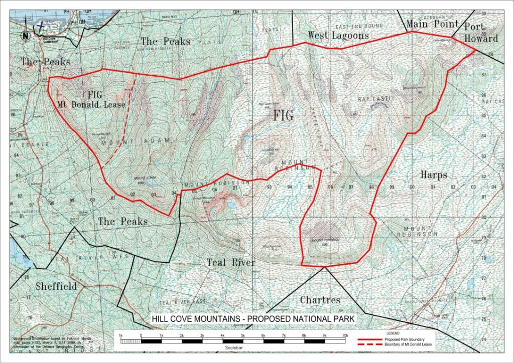 The easiest access for those who would like to enjoy the park on foot is via the roadside at Hell’s Kitchen. This access can be found approximately 1 mile south of the Hill Cove settlement on the main road linking to the Fox Bay – Port Howard road. The boundary of the national park lies approximately 400m east of the roadside across privately-owned land.