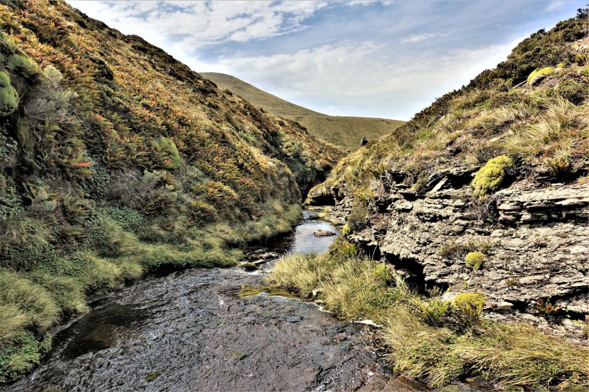 Hill Cove Mountains National Park was designated in 2025. The rugged mountains tower up to 700m above sea level and contain the second and third highest peaks in the Falklands, Mount Adam and Mount Robinson, respectively. Among these high rocky peaks, the park also contains wetland-rich valleys coursing with streams, deep tarns and grasslands. If you venture to look more closely into these habitats, you’ll soon see one of the primary reasons that make this place so unique. Nestled within the mosaic of upland habitats are over half of the total species of native flora in the Falklands, including many of the country’s rarest. This biodiversity is how the Hill Cove Mountains became internationally recognised as an Important Plant Area (IPA) and has since been recognised as a national park.