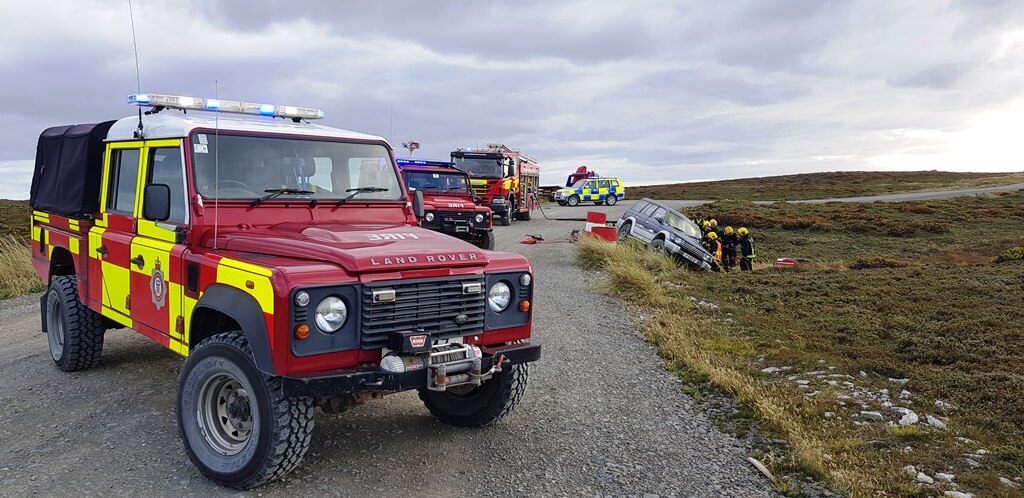 Finally each of the full time staff has a dedicated fire landrover totalling in 4 landrovers. These landrovers are the first on scene at any incident carrying the incident commander and often a casualty carer. Each landrover has a full emergency care kit, 4X4 capability and a winch. All the landrovers have Puma engines and are capable of covering vast distances cross country or via our clay road system.