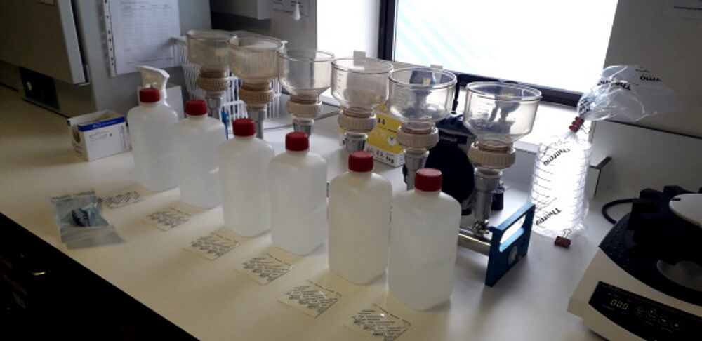 The laboratory takes no responsibility for collecting samples, but does provide suitable sterile sample collection devices as part of the service.  Customers should liaise with the laboratory team to arrange collection of sample containers.  Each sample must be accompanied by suitable request form.