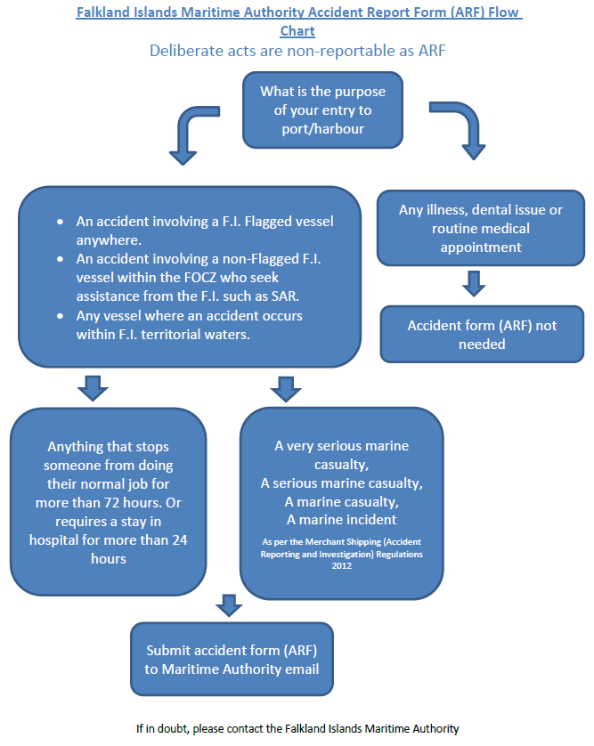 We have produced a flow chart to help you assess whether or not you need to report an accident or incident to the Maritime Authority. Please follow these guidelines and if you have any questions please feel free to contact us.