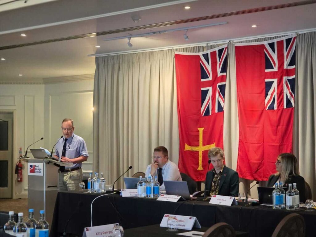 This year’s Red Ensign Group (REG) conference 2025 was held in Guernsey attended by the Falkland Islands Maritime Authority, represented by Chris Moorey Head of Maritime, Steuart Barlow Harbour Master and David Fuller Chief Surveyor along with maritime representatives from the UK, Crown Dependencies and Overseas Territories. This annual event serves as an invaluable platform to exchange experiences and expertise, address shared challenges and explore effective solutions in their roles as coastal states. Participants from across the globe are convened to discuss key maritime issues, including the duties of coastal states, their registries, environmental protection, pollution control, and decarbonisation.